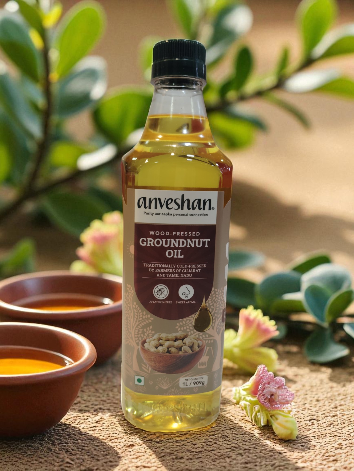 Anveshan Cold Pressed Groundnut Oil is carefully extracted from premium-quality groundnuts using a traditional cold-pressing method that avoids heat and chemical processing. This ensures the oil retains its natural nutty aroma, rich taste, and nutritional integrity. Light in texture and naturally unrefined, it is a wholesome oil that complements everyday cooking and wellness routines.